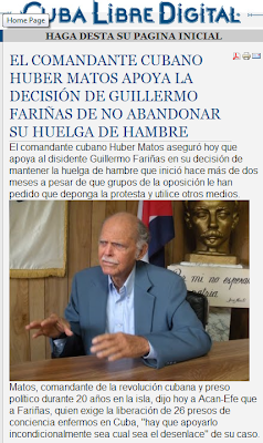 San José, 4 may (ACAN-EFE).- El ex comandante cubano Huber Matos aseguró hoy que apoya al disidente Guillermo Fariñas en su decisión de mantener la huelga de hambre que inició hace más de dos meses a pesar de que grupos de la oposición le han pedido que deponga la protesta y utilice otros medios.